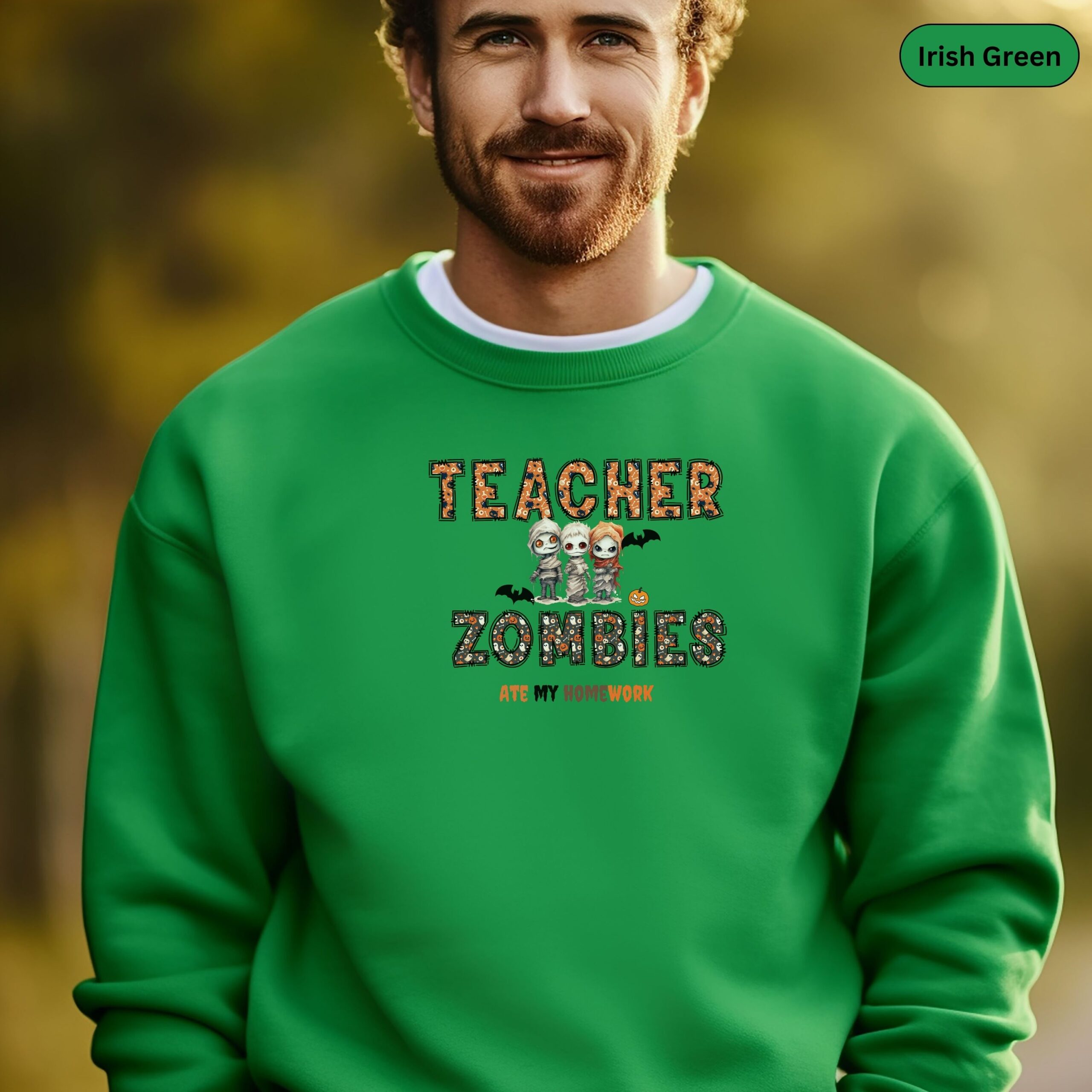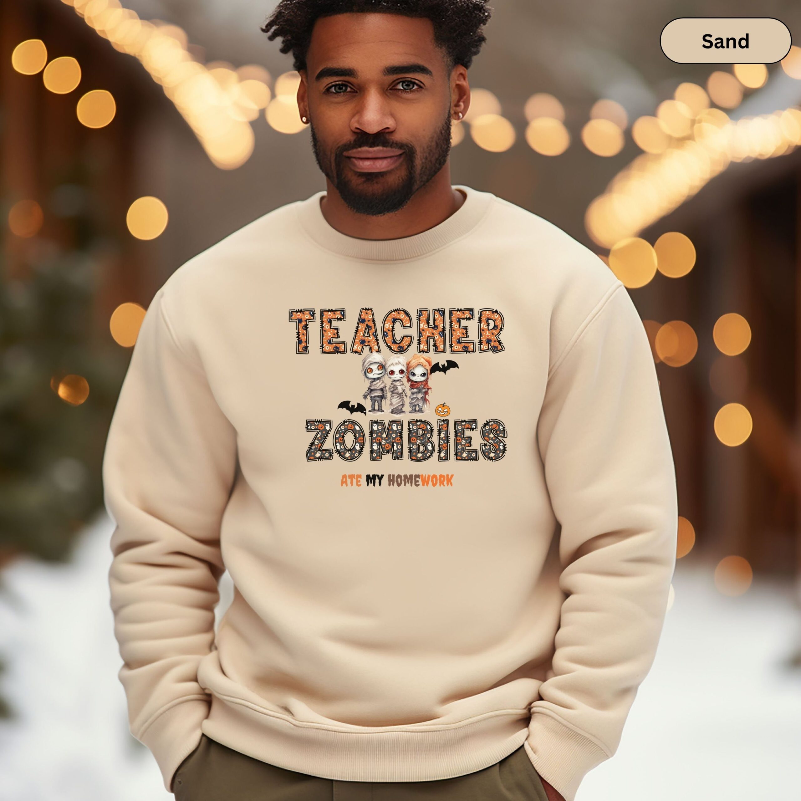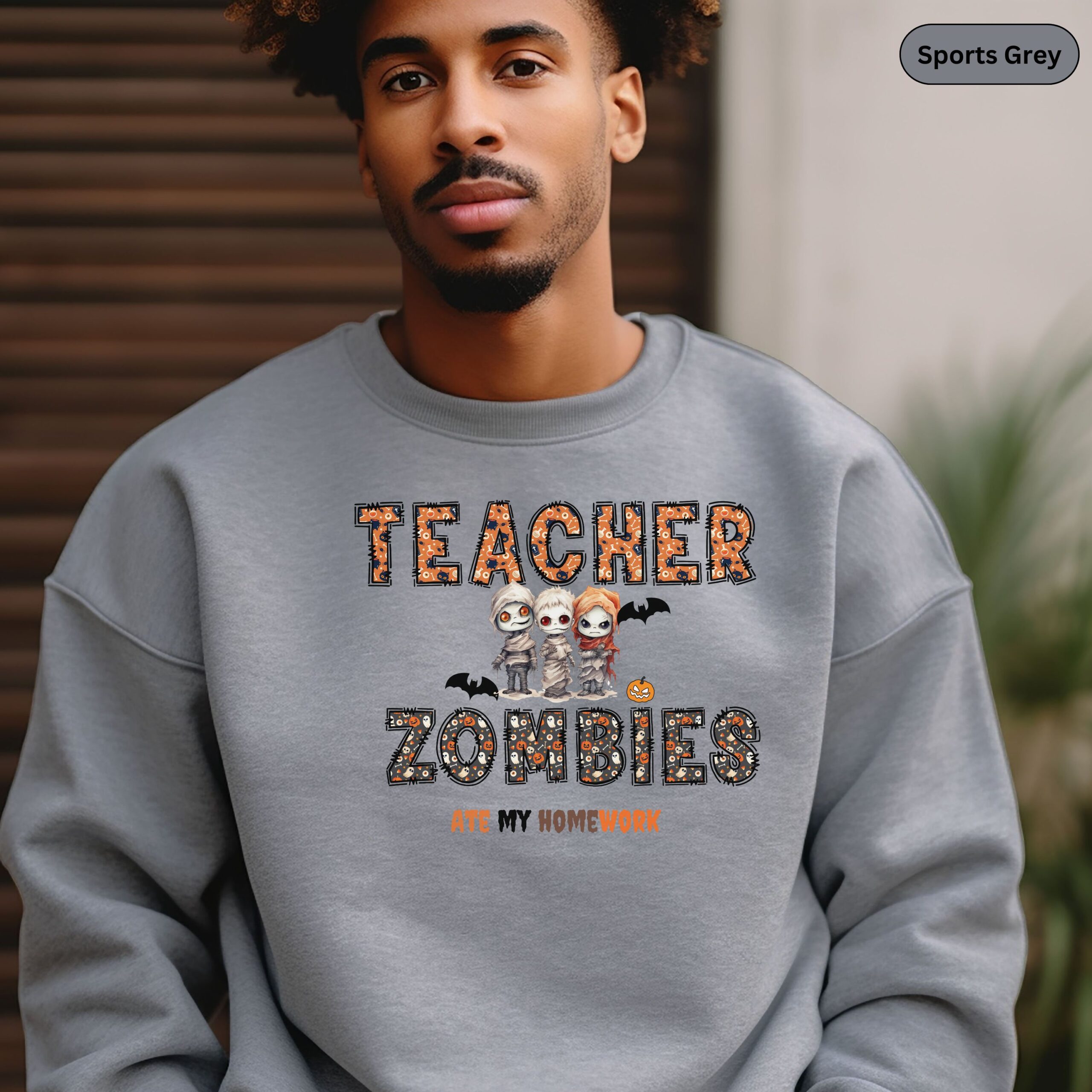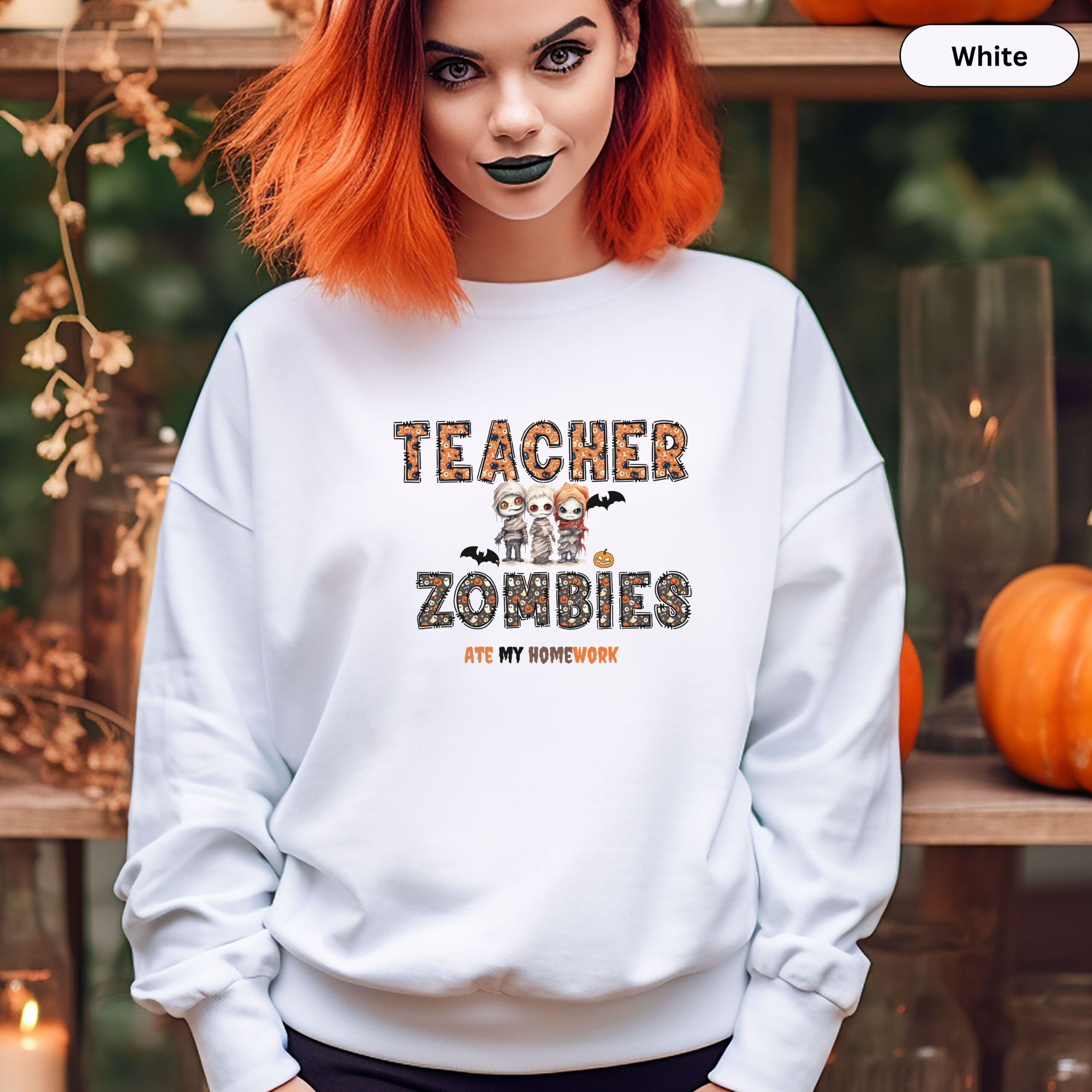Introducing the perfect blend of humor, festivity, and style with our “Teacher! Zombies Ate My Homework” shirt. Embrace the Halloween spirit uniquely as a teacher or gift it to an educator with a penchant for the supernatural. This Teacher Halloween Shirt is not only a nod to the fun Zombie Halloween theme but also a whimsical excuse for that missing assignment! Whether you’re celebrating the spooky season in class or at a festive gathering, our Fall Teacher Shirt ensures comfort, laughter, and a dash of eerie charm. Looking for a thoughtful Gift for a teacher? This Shirt, with its blend of classroom humor and Halloween vibes, makes an exceptional present. Stand out this season with a shirt that combines the best of teaching and terrifying!